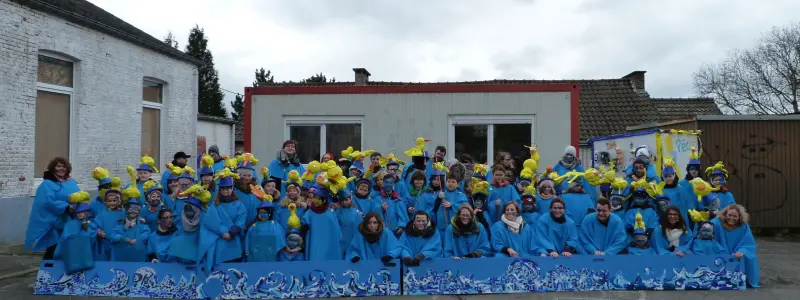 Nous avons une semaine top chrono pour construire nos propres costumes et apprendre à déambuler en groupe. A l’aide d’une multitude de techniques : peinture, assemblage, couture, collage, tressage, les ados vont élaborer leur déguisement, créer des instruments, inventer des rythmes et les interpréter collectivement. Ils vont aussi chorégraphier leurs pas et danser dans la rue pour égayer la parade du Carnaval d’Antheit.