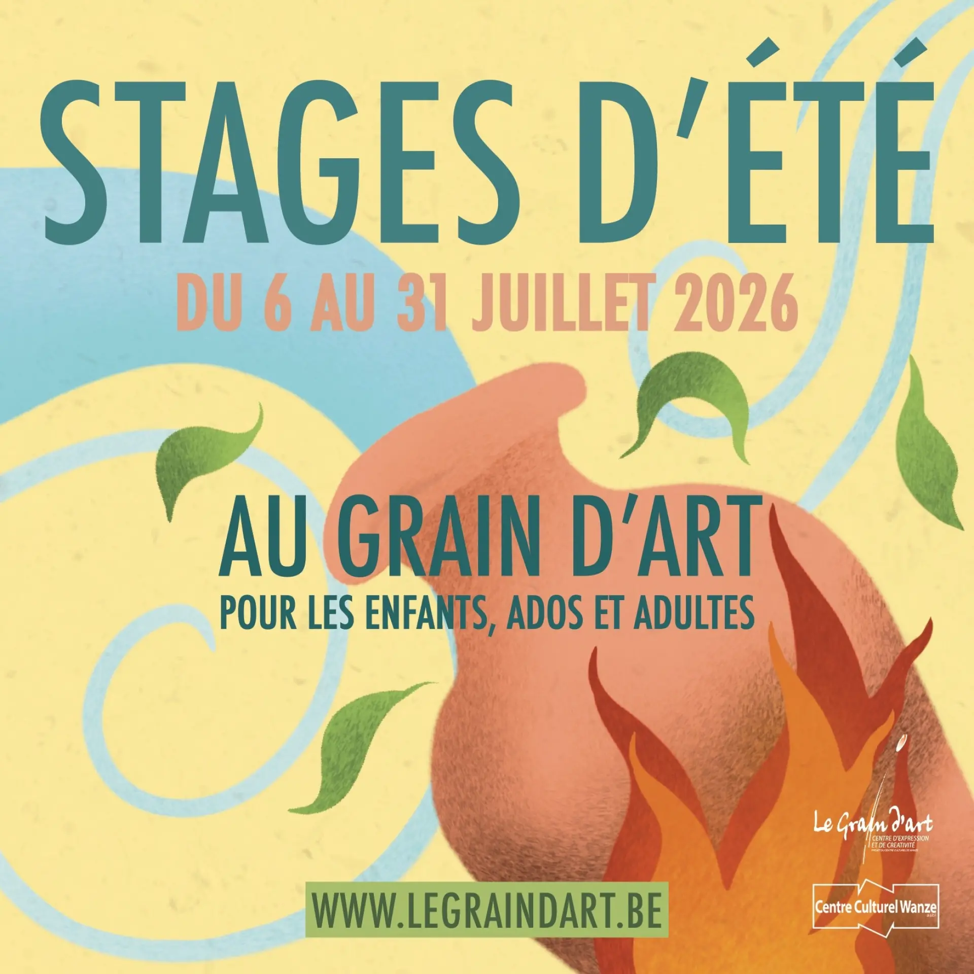 Les stages ont lieu au Grain d’art (40, rue Grandes Ruelles à Antheit). Les prix des stages sont dégressifs pour les membres d’une même famille. Possibilité de paiement via les chèques Art. 27. Durant les semaines de stages enfants, des garderies sont organisées à partir de 8h et jusqu'à 17h.