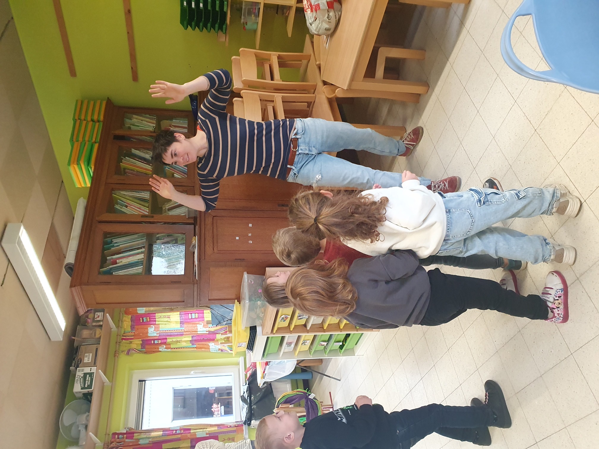 Des classes de la 1ère maternelle à la 2ème primaires ont assisté au spectacle « Rabibochées » à la salle Jean-Pierre Catoul du Centre Culturel de Wanze lors de la saison 2024-2025. C’était un spectacle de danse, mouvement et cirque. Suzon Gheur, une des comédiennes, est venue rencontrer les enfants en classe (1ère et 2ème maternelles Ecole Communale de Bas-Oha) . Elle a d’abord fait connaissance avec les enfants. Une petite balle de jonglerie roulait d’un enfant à l’autre en faisant un circuit des prénoms ! Suzon a reparlé du spectacle. Elle a ensuite proposé une série de petits exercices pour aborder l’équilibre et la coordination des mouvements : bouger en posant un petit coussin de jonglerie sur ta tête, sur le bras, dans le coup … sans le faire tomber, suivre de petits chemins sans poser le pied parterre, monter sur une chaise,…